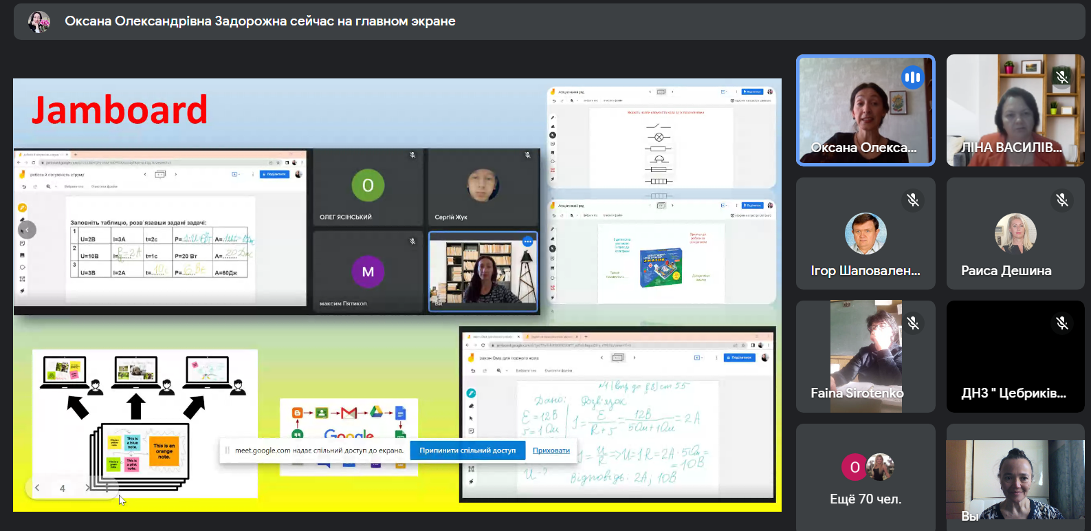 Під час обговорення презентацій викладачі щедро ділились своїми наробками, власним досвідом щодо використання віртуальних дошок, розширень для браузера Google Chrome.