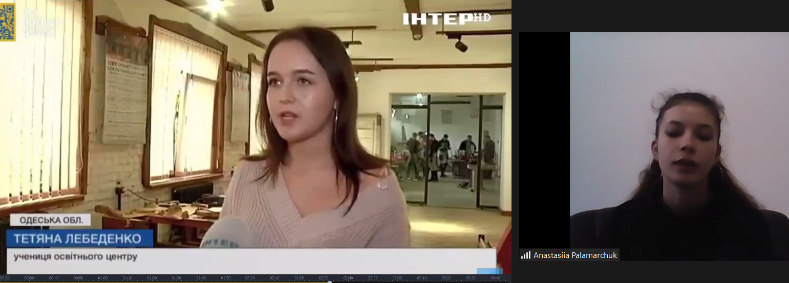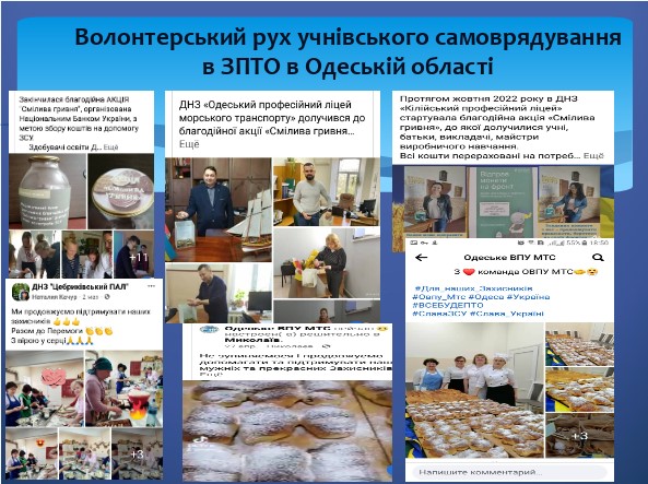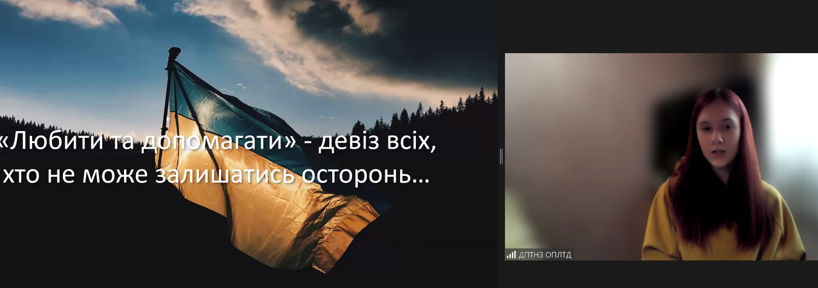 Про волонтерську діяльність у закладі освіти доповіла та продемонструвала насичену презентацію про проведену роботу лідерка учнівського самоврядування ДПТНЗ “Одеський професійний ліцей технологій та дизайну” – Владислава Грабар.