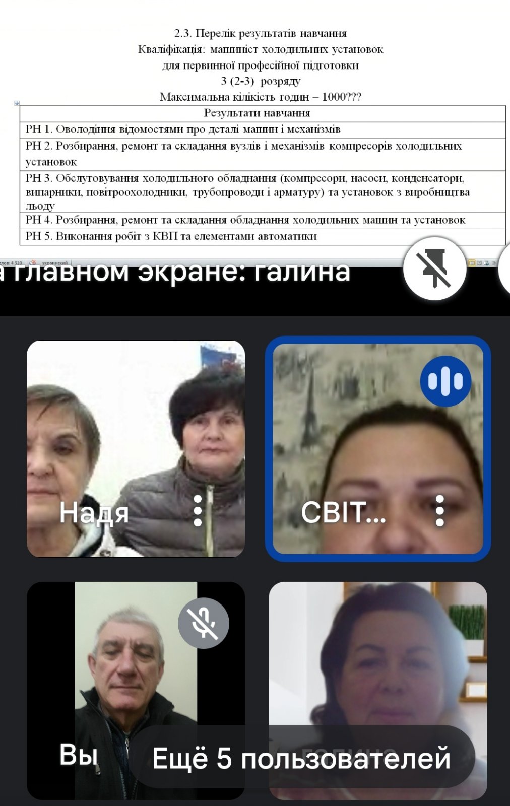 11 листопада 2022 року відбулося чергове засідання робочої групи з розробки проєкту Державного освітнього стандарту з професії 8163 «Машиніст холодильних установок», в якому взяли участь методисти Навчально-методичного центру професійно-технічної освіти в Одеській області та педпрацівники ДНЗ «Одеський центр професійно-технічної освіти».