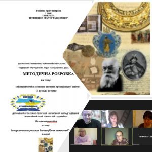 Мета засідання: вивчення, узагальнення та впровадження в навчально-виховний процес передового педагогічного досвіду. Роботи представили викладачі історії та географії. Методичні розробки, що подані на розгляд були різні: це і «Використання сучасних інноваційних технологій на уроках історії», розробка уроку по географії «Америка. Третиний сектор економіки», це і методична розробка написана з власного досвіду «Міжпредметні зв’язки при вивченні громадянської освіти». Всі роботи було розглянуто і проаналізовано. Робота активу в онлайн режимі, пройшла плідно та в дружній атмосфері.