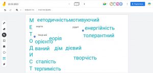 У ході засідання учасники виконували завдання в додатках Jamboard, Mentimeter, Wakelet. Працювали в команді, ділилися очікуваннями від занять в «Школі». На завершення отримали домашнє завдання.
