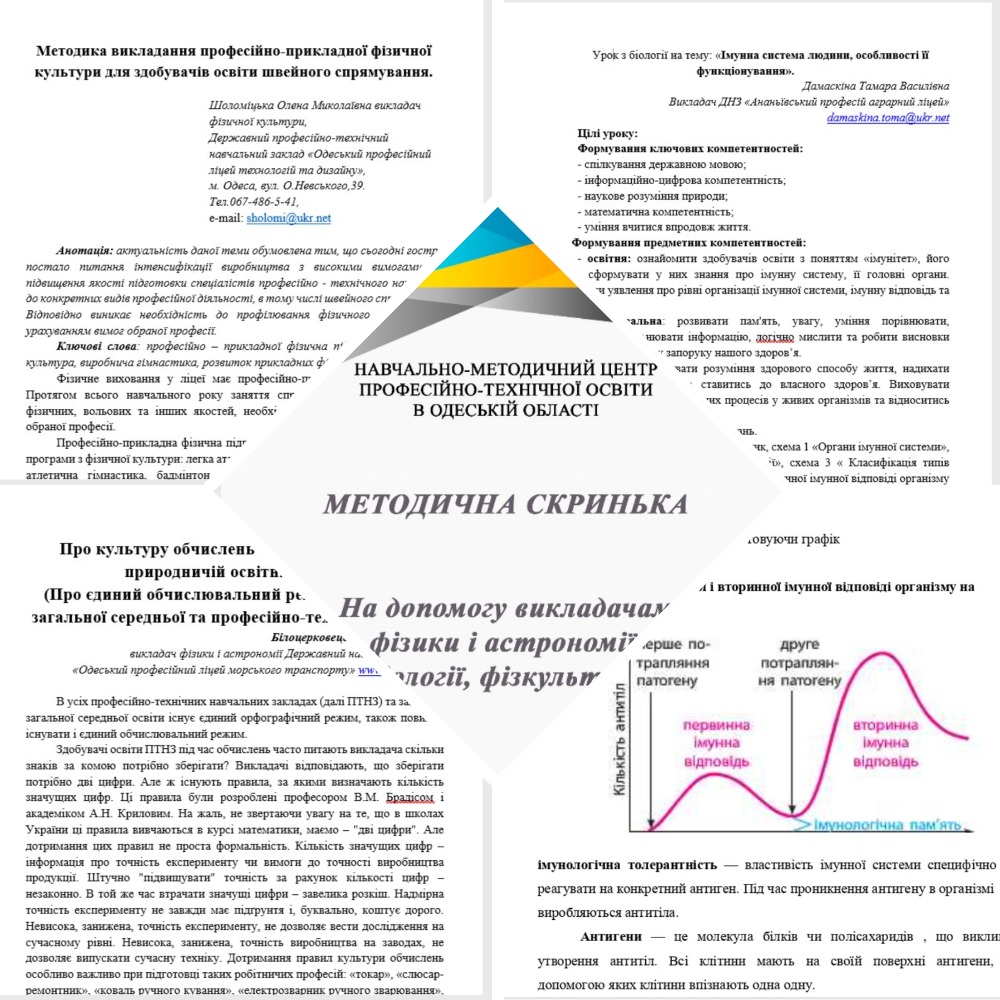 Найактуальніші з методичних розробок були рекомендовані для друку у Інформаційно-методичному збірнику Навчально-методичного центру професійно-технічної освіти в Одеській області «Профтехосвіта Одещини».
