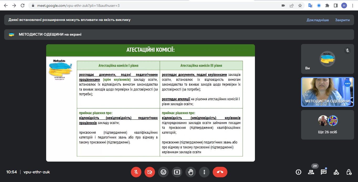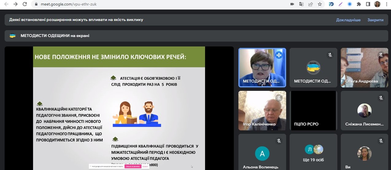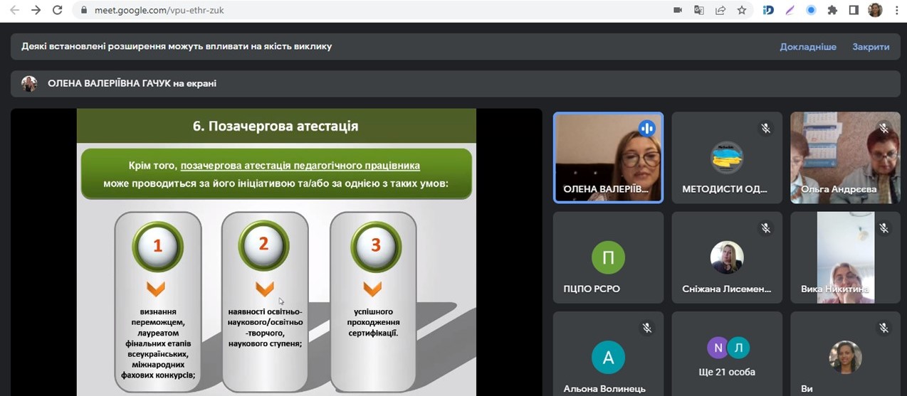 Роботу вебінару відкрила Литвинюк О.М. – завідувач кабінету організаційно-методичної, кадрової та виховної роботи НМЦ ПТО в Одеській області. Підкреслила, що реалізовувати нове Положення про атестацію педагогічних працівників необхідно у її концептуальному задумі.