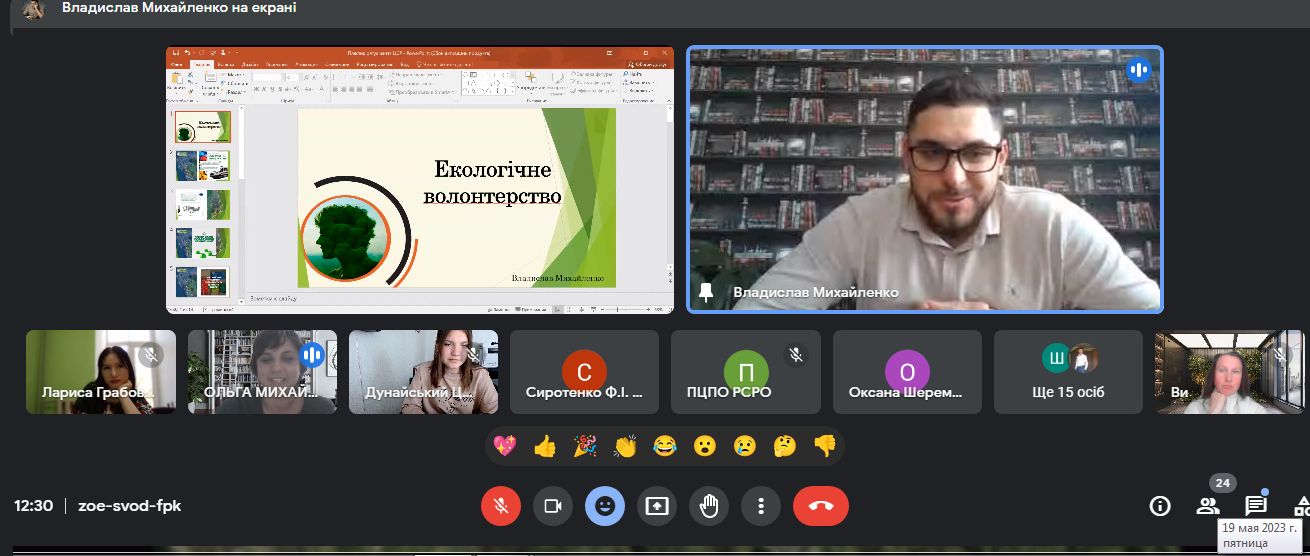 Що таке «Екологічне волонтерство» розповів присутнім круглого столу – Владислав Михайленко, PhD в галузі екології, асистент кафедри екології та охорони довкілля Одеського державного екологічного університету, член Ради молодих вчених при Одеській обласній державній адміністрації, співзасновник ГО «Місто майбутнього», координатор проєкту «Пластик рятує життя». Доповідач поділився ідеями і доробками своєї організації, спонукав лідерів Одещини долучитися до волонтерського екологічного руху.