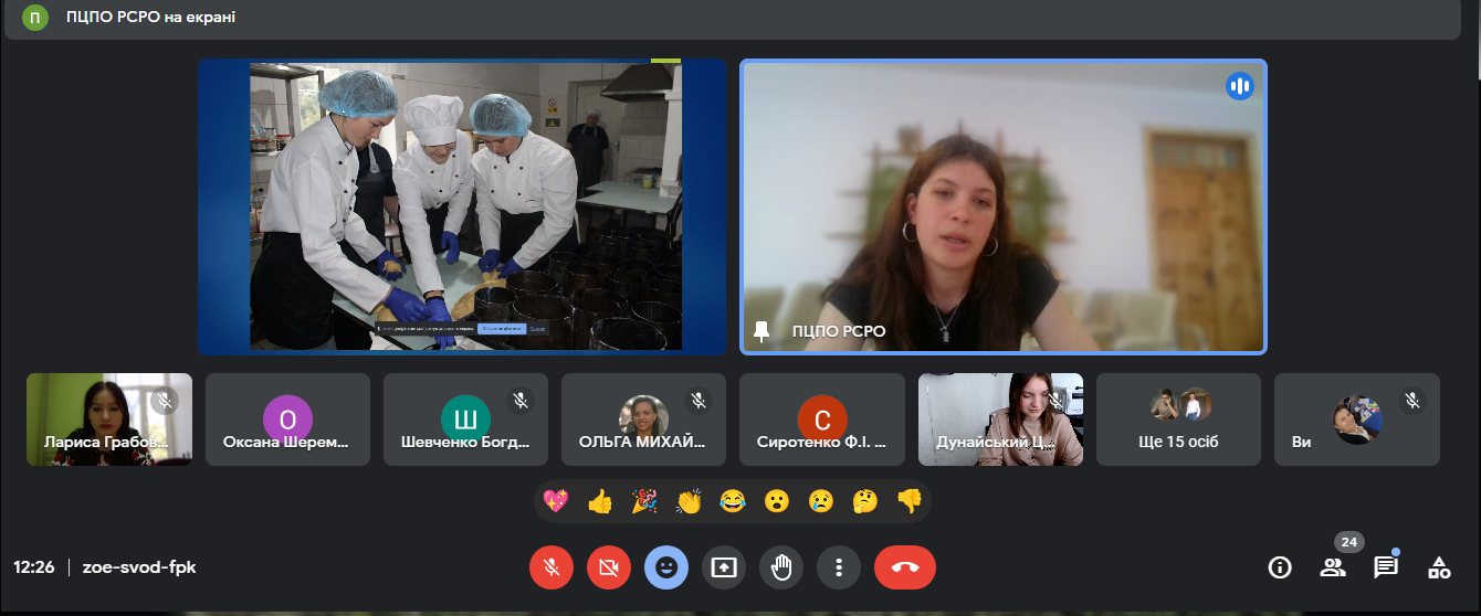 «Волонтерська діяльність під час війни у професійній освіті» це питання підняла Лідія Рябкова, лідер учнівського самоврядування «Північний центр професійної освіти». У своїй презентації розповіла і поділилась досвідом: як організована робота і як працює осередок волонтерського руху в Саврані.