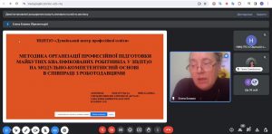 Методика організації професійної підготовки майбутніх кваліфікованих робітників у закладі професійної освіти на модульно – компетентнісній основі в співпраці з роботодавцями, яку представила учасникам вебінару Блажко Олена Петрівна, викладач спецдисциплін ЗП(ПТ)О «Дунайський центр професійної освіти» була змістовною та цікавою.