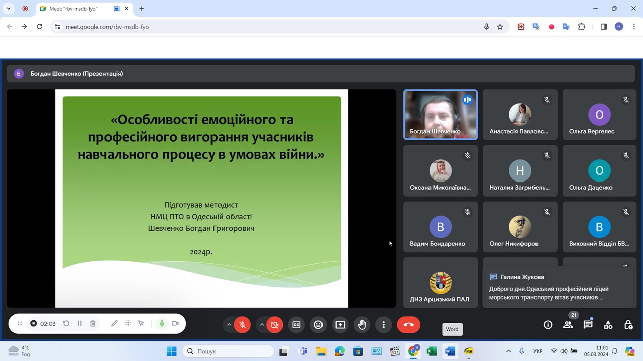 Під час тренінгу було продемонстровано та використано наочні методи та практики самодопомоги при емоційному вигоранні, надано поради для заспокоєння як себе, так і оточуючих. Під час рефлексії були виконані деякі практики з поясненням результатів.