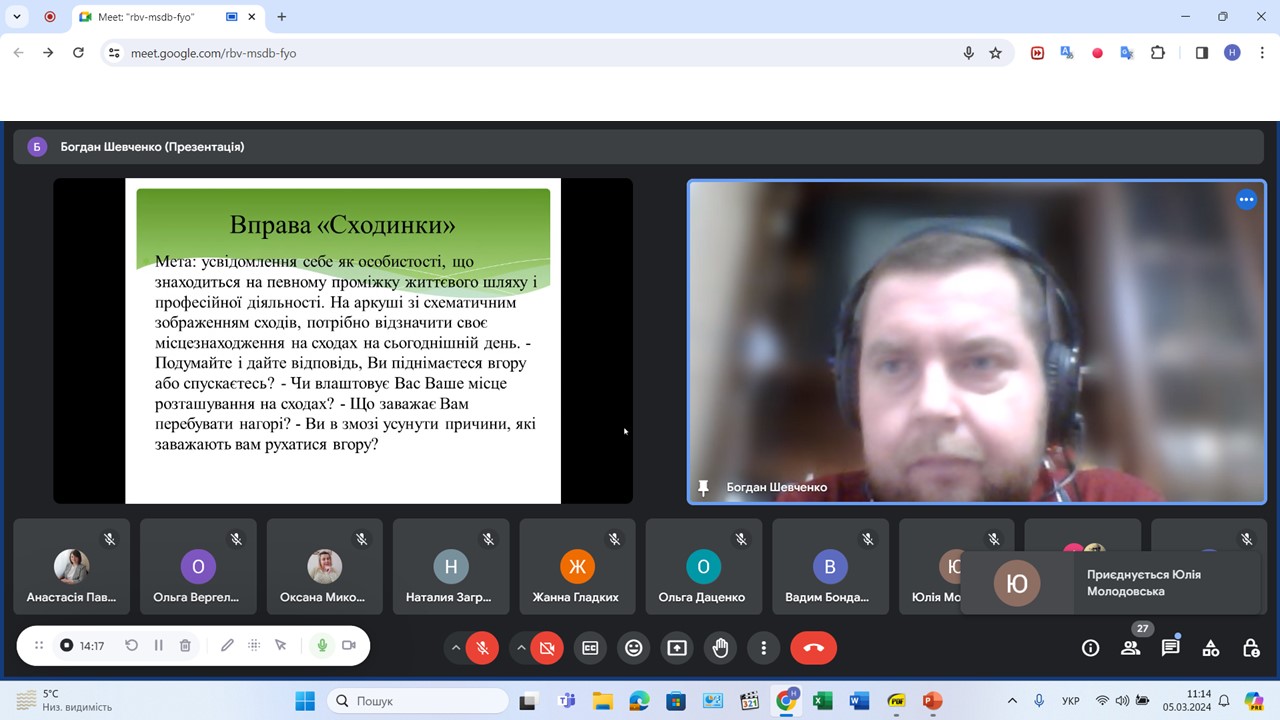 Темою тренінгу було з’ясування причин виникнення вигорання та його наслідки, способи і засоби подолання синдрому вигорання.