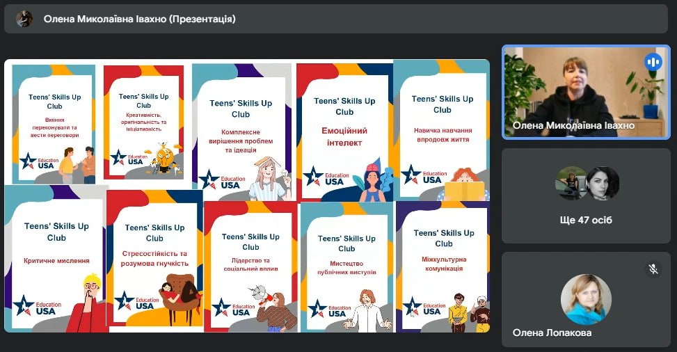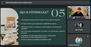 Продовжила засідання Івахно Олена, викладач ДНЗ «Одеський професійний ліцей будівництва та архітектури, яка цікаво розповіла про участь у проєкті Education USA в Україні. М’які навички – це не просто набір додаткових умінь, це справжній ключ до успішної адаптації до будь-яких викликів у сучасному світі швидких змін.