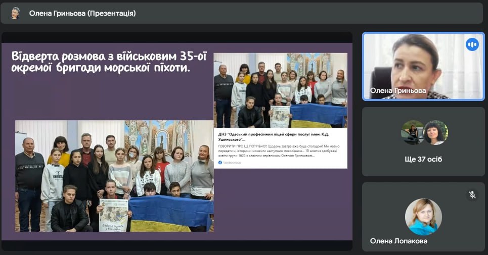 Про співпрацю з Центром патріотичного виховання розповіла Гриньова Олена, викладач ДНЗ “Одеський професійний ліцей сфери послуг Південноукраїнського національного педагогічного університету імені К.Д.Ушинського”.