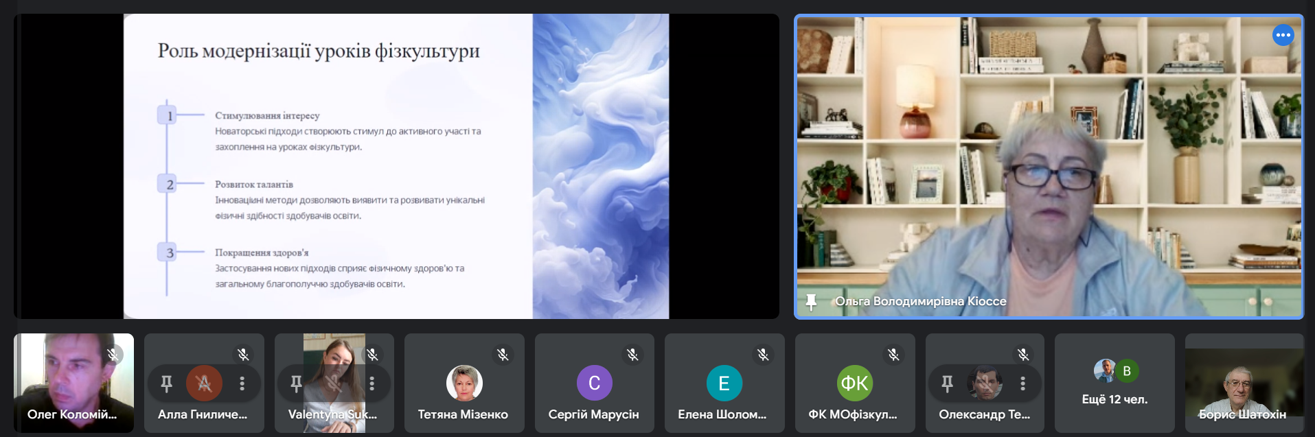 Кіоссе Ольга Володимирівна, викладач фізичної культури ДНЗ «Одеський центр професійно-технічної освіти», з темою «Діяльність викладача фізичної культури в контексті модернізації предмета «Фізична культура», проаналізувала роль модернізації уроків фізкультури, види інноваційних методик уроків фізкультури, основні перспективи модернізації на уроках фізкультури, приклади успішної модернізації на уроках фізкультури. Звичайно, розповіла про успіхи та досягнення здобувачів освіти ДНЗ «Одеський центр професійно-технічної освіти» в обласних і внутрішніх спортивних змаганнях.