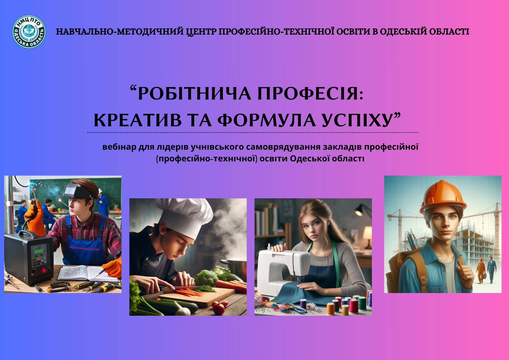 Ласкаво просимо до перегляду запису вебінару, присвяченого темі “Робітнича професія: креатив та формула успіху”. Цей вебінар відбувся за участі лідерів учнівського самоврядування закладів професійної (професійно-технічної) освіти Одеської області.