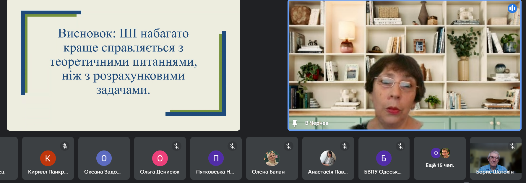 Розпочала роботу Чернєва Вікторія Едуардівна, викладач фізики і астрономії ДНЗ «Білгород-Дністровський професійний будівельний ліцей» з темою «Оцінка точності відповідей штучного інтелекту». Показала, як зуміла підняти інтерес до навчання, розбираючи та аналізуючи, як задачі з фізики розв’язує штучний інтелект, де дуже часто можна знайти помилки.
