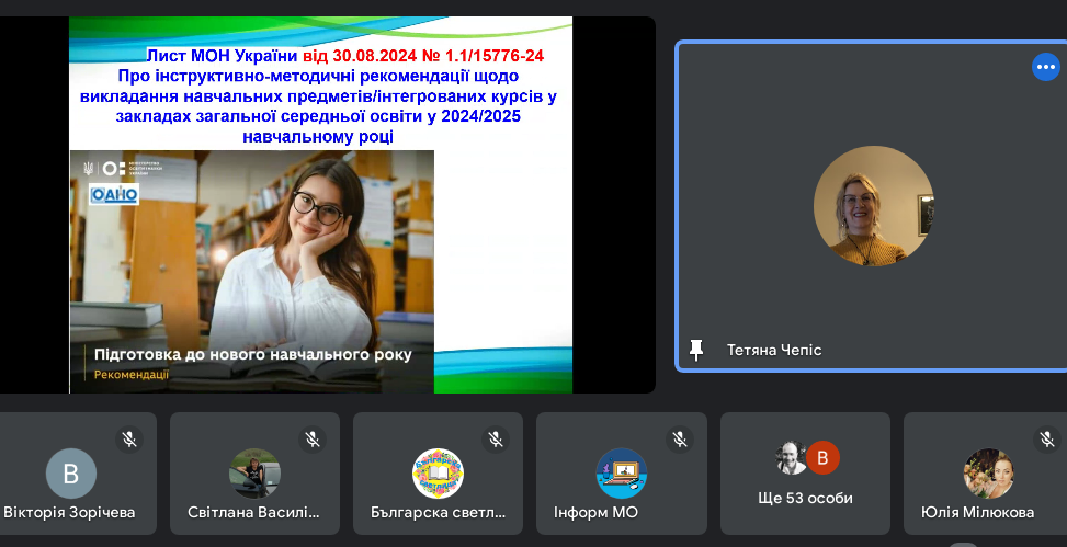 Тетяна Павлівна акцентувала увагу на нормативно-правовому забезпеченні, вимогах щодо викладання предметів загальноосвітньої підготовки у новому навчальному році.