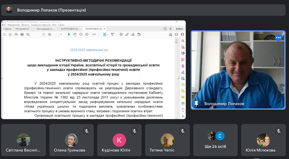 Учасники онлайн-заходу звернули увагу на чітке планування роботи та шляхи удосконалення сучасних інструментів, форм і методів роботи із здобувачами освіти, особливо в умовах змішаного (дистанційного) навчання; оновлення комплексно-методичного забезпечення предметів; запровадження комп`ютерних ІТ-технологій в освіті; використання навчально-методичного забезпечення Інформаційно-методичного порталу Навчально-методичного центру професійно-технічної освіти в Одеській області.
