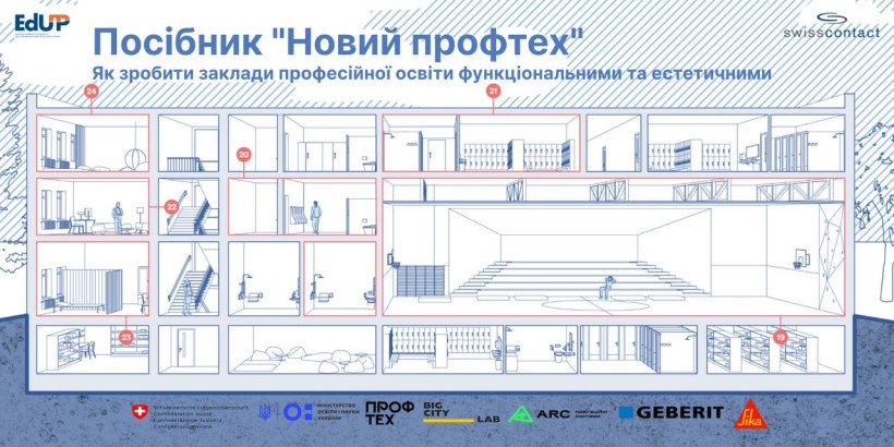 Створено посібник «Новий профтех. Путівник з ремонтних робіт у закладах професійної освіти», який надає чіткі та інтуїтивно зрозумілі рекомендації для модернізації освітніх просторів. Документ розроблено командою урбан-бюро Big City Lab спільно з агенцією ARC Wayfinding Systems за підтримки Міністерства освіти і науки України та Swisscontact. Він має на меті допомогти закладам професійної освіти оновити свої приміщення, зробивши їх більш функціональними, естетичними та комфортними для учнів і викладачів.