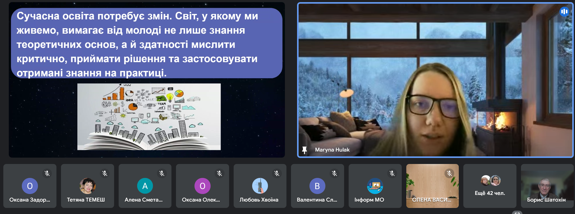Гулак Марина Віталіївна, викладач фізики і астрономії ДНЗ «Одеське вище професійне училище морського туристичного сервісу» підготувала справжній майстер-клас з теми «Використання інтерактивних технологій у викладанні фізики: шлях до розвитку критичного мислення і самостійності здобувачів освіти». Було акцентовано увагу на інтерактивних методах, що допомагають учням засвоїти та унаочнити вивчення складних тем, розвивати вміння аналізувати.