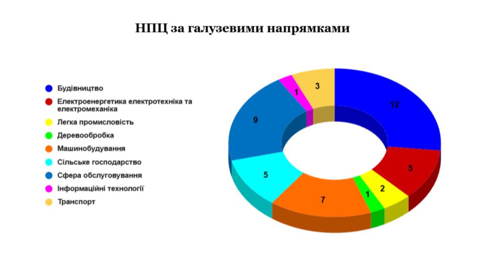 Станом на 01.01.2025р. на базі 13 закладів П(ПТ)О створено 42 НПЦ за 9 галузевими напрямками та 3 кулінарні хаби (в ДНЗ «Одеський центр професійно-технічної освіти», «Північний центр професійної освіти», ЗП(ПТ)О «Дунайський центр професійної освіти»).