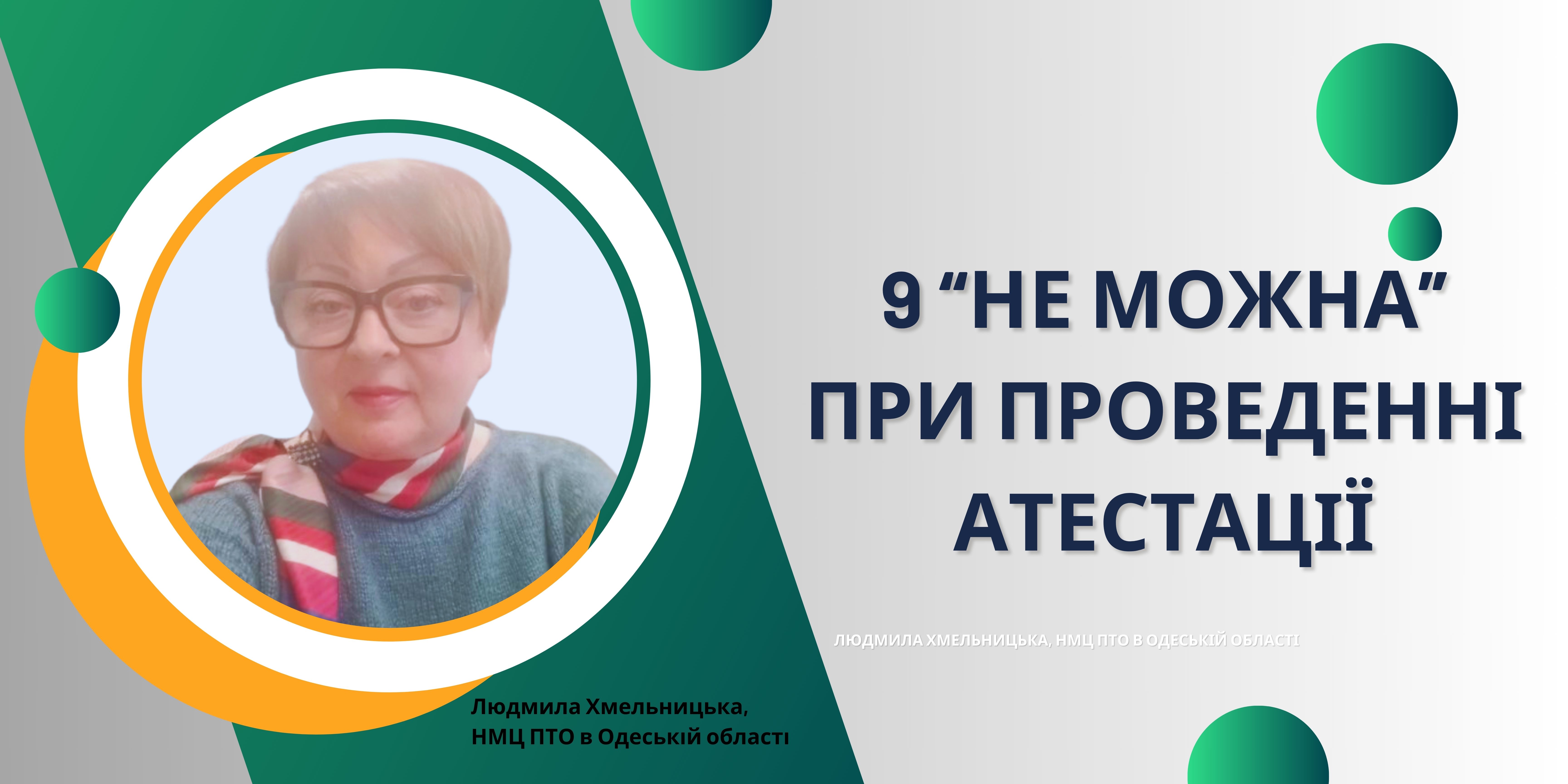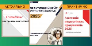 - “9 не можна” під час проведення атестації. Цей пункт стосувався найважливіших помилок та порушень, яких слід уникати під час проведення атестації педагогічних працівників. Учасники обговорили конкретні ситуації та приклади з практики.