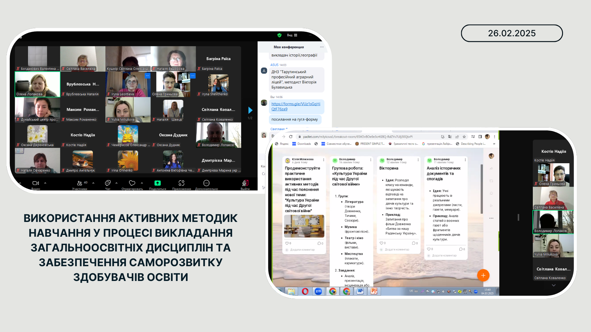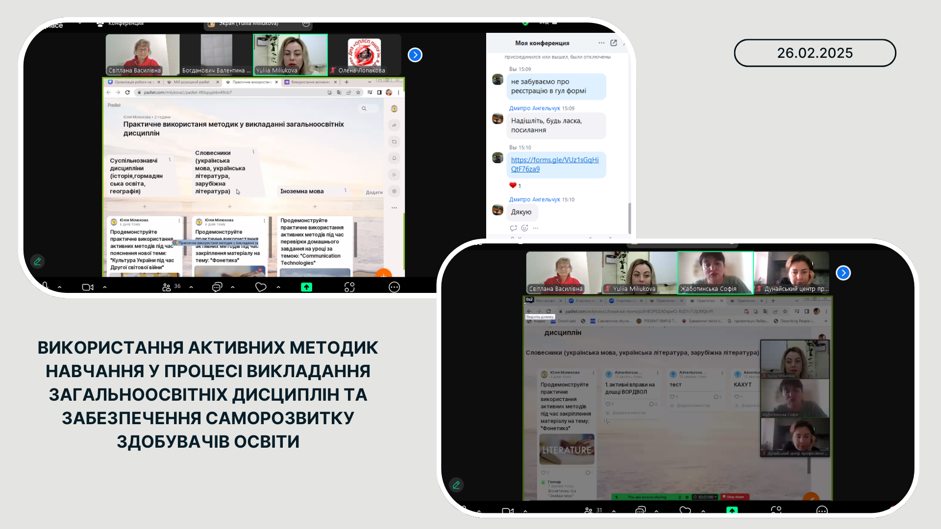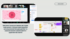 4 березня 2025 року згідно з планом роботи НМЦ ПТО в Одеській області відбулось засідання для активів обласних методичних секцій української мови та літератури, зарубіжної літератури, іноземних мов, громадянської освіти, всесвітньої історії, історії України, географії на тему: «Використання активних методик навчання у процесі викладання загальноосвітніх дисциплін та забезпечення саморозвитку здобувачів освіти».