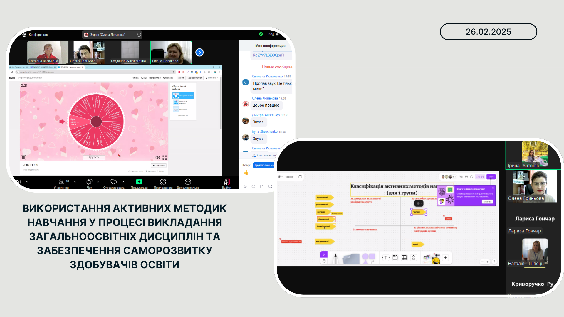 Під час заходу була теорія і практика. В кожній групі обирали спікера, який і висловлював спільну думку. На кінець засідання була проведена рефлексія на платформі Wordval – Випадкове колесо. Модератори крутили колесо з початком речення, а викладачі мали його закінчити. Тематика запитань стосувалась безпосередньо теми засідання.