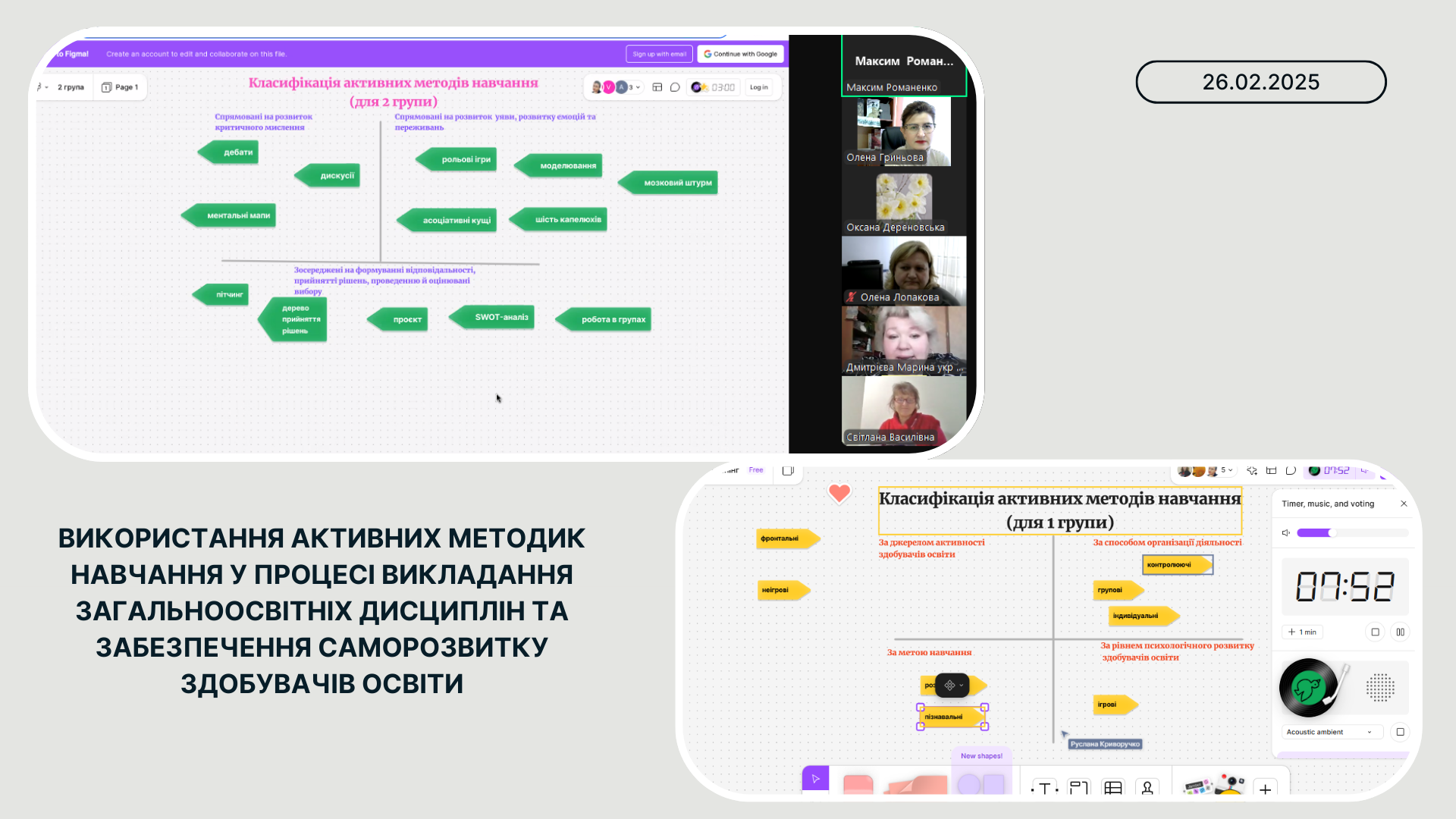 Далі було знайомство з дошкою Figma. Де викладачі працювали в групах і виконували завдання. Продовжила роботу Юлія Мілюкова, голова обласної методичної секції, викладач англійської мови ДНЗ «Одеський професійний ліцей сфери послуг Південноукраїнського національного педагогічного університету ім. К.Д.Ушинського» – модератор практичної роботи на онлайн дошці Padlet. Ознайомила з теоретичною та практичною роботою на онлайн-дошці Padlet.