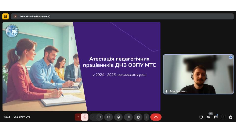 З досвідом організації роботи атестаційної комісії та атестації педагогічних працівників у ДНЗ «Одеське ВПУ морського туристичного сервісу». Методист закладу Артур Моренко запросив учасників вебінару у залаштунки організаційної роботи атестаційної комісії І рівня при ЗП(ПТ)О: розповів про системний підхід щодо створення атестаційних документів, ознайомив із розробленою у закладі інструкцією щодо збору матеріалів та створення електронного портфоліо, розказав про етапи оцінювання якості матеріалів. Поділився досвідом використання Єдиної атестаційної системи.