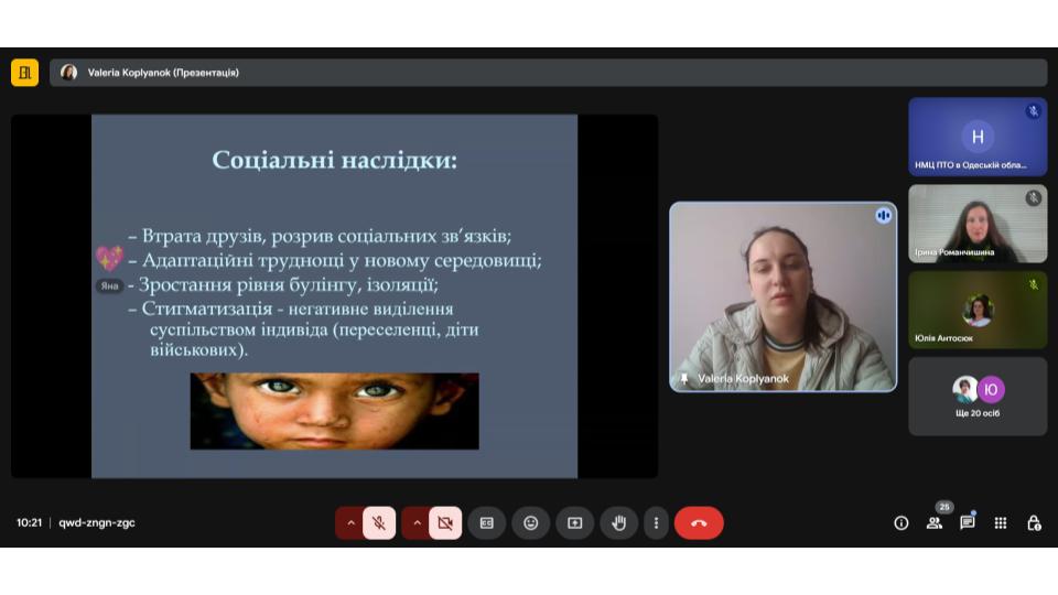Навчально-методичним центром професійно-технічної освіти в Одеській області 05 травня 2025 року було проведено онлайн дискусію у рамках тижневика «Юність, украдена війною». Мета заходу: обговорення впливу збройної агресії на дітей, обмін досвідом та пошук шляхів підтримки й захисту дитячих прав в умовах війни.