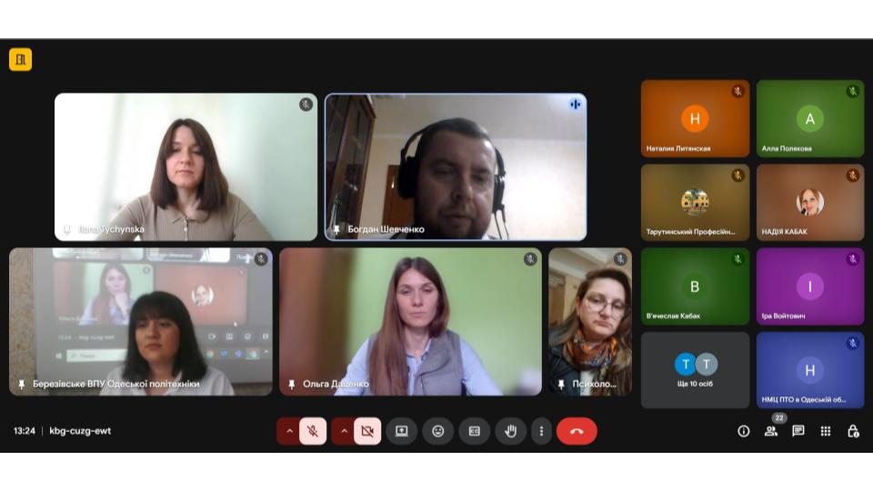 Навчально-методичним центром професійно-технічної освіти в Одеській області 26 травня 2025 року для психологів і соціальних педагогів закладів професійної (професійно – технічної) освіти та всіх бажаючих було проведено обласне онлайн засідання у формі вебінару на тему: «Особливості виховної роботи зі здобувачами категорії ВПО, особами, постраждалими під час війни, дітьми-сиротами, особами з ООП в закладі освіти».