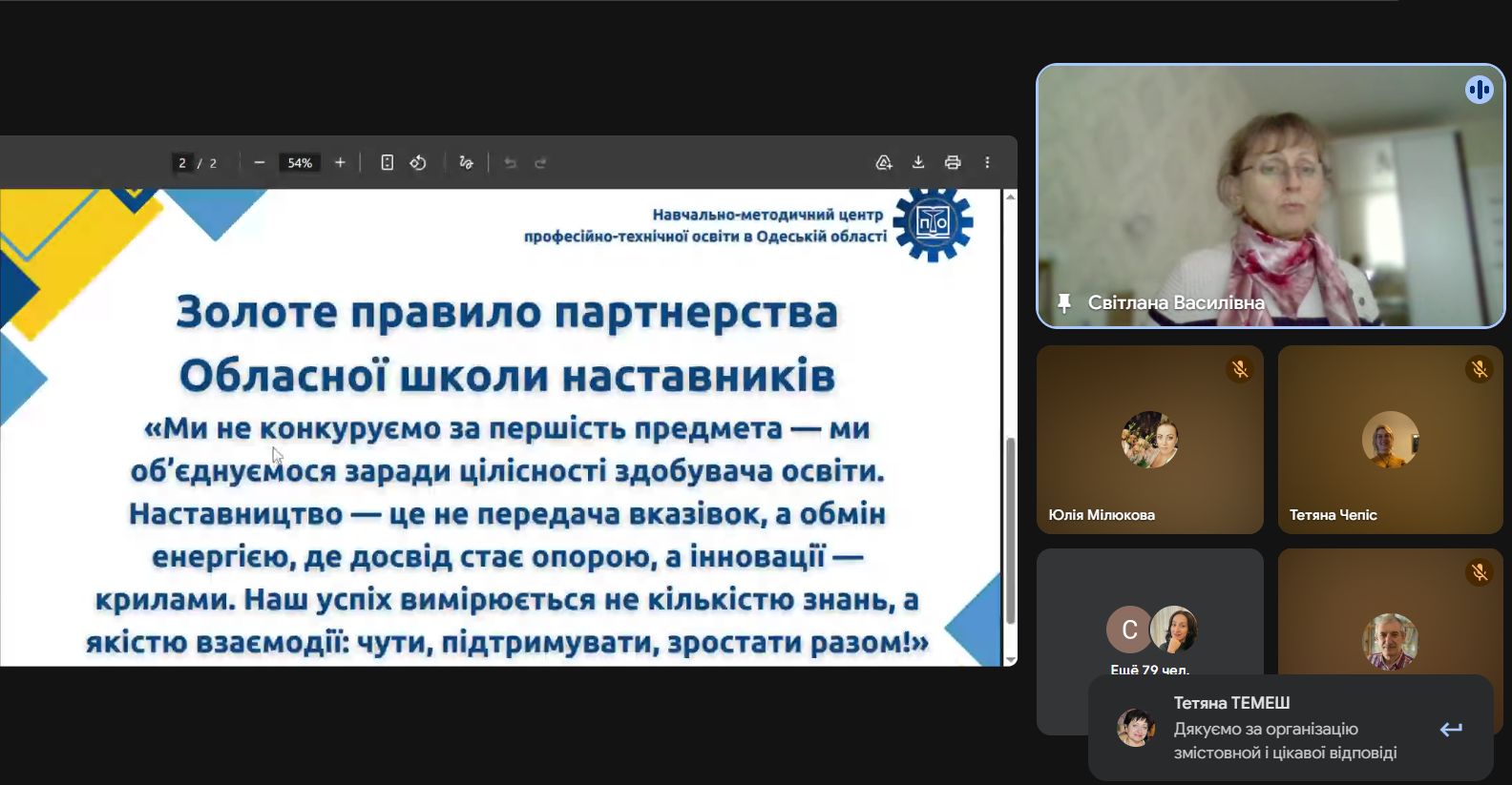 У межах проведення вебінару активно працювала Школа педагога-наставника, яка об’єднала освітян, небайдужих до професійного зростання та розвитку педагогічної спільноти.