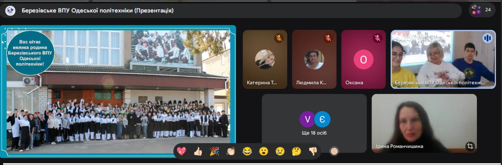 Ірина Василівна Романчишина, методистка НМЦ ПТО в Одеській області, відкрила захід, ознайомила присутніх із планом роботи і представила Катерину Максимівну Торкіну – завідувачку відділу освітньо-наукової підготовки, докторку філософії зі спеціальності 011 «Освітні, педагогічні науки» КЗВО «Одеська академія неперервної освіти Одеської обласної ради». Спікерка продемонструвала інтерактивну презентацію на тему: «Розвиток навичок командної взаємодії студентів закладів професійної освіти в інноваційному освітньому середовищі».