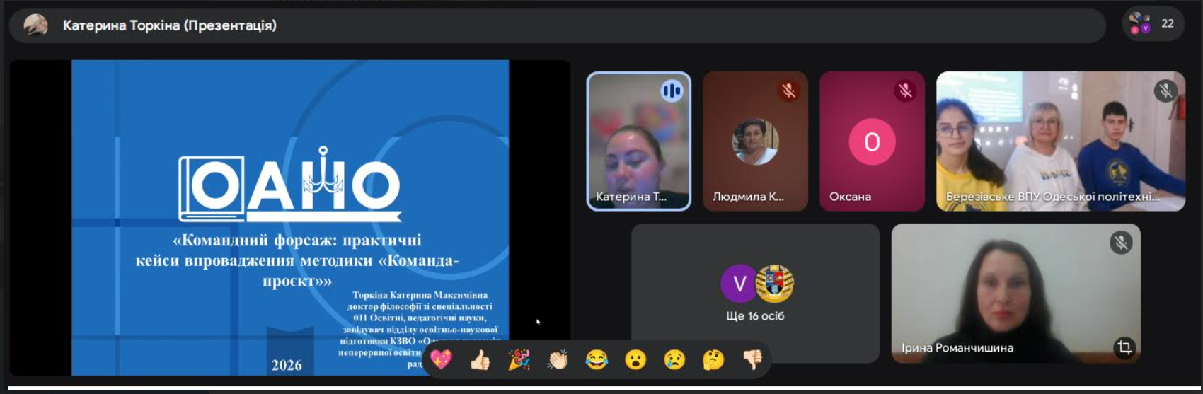 «Команда-проєкт: як перетворити групу студентів на успішний стартап» (Ірина Василівна Романчишина – методистка НМЦ ПТО в Одеській області).
