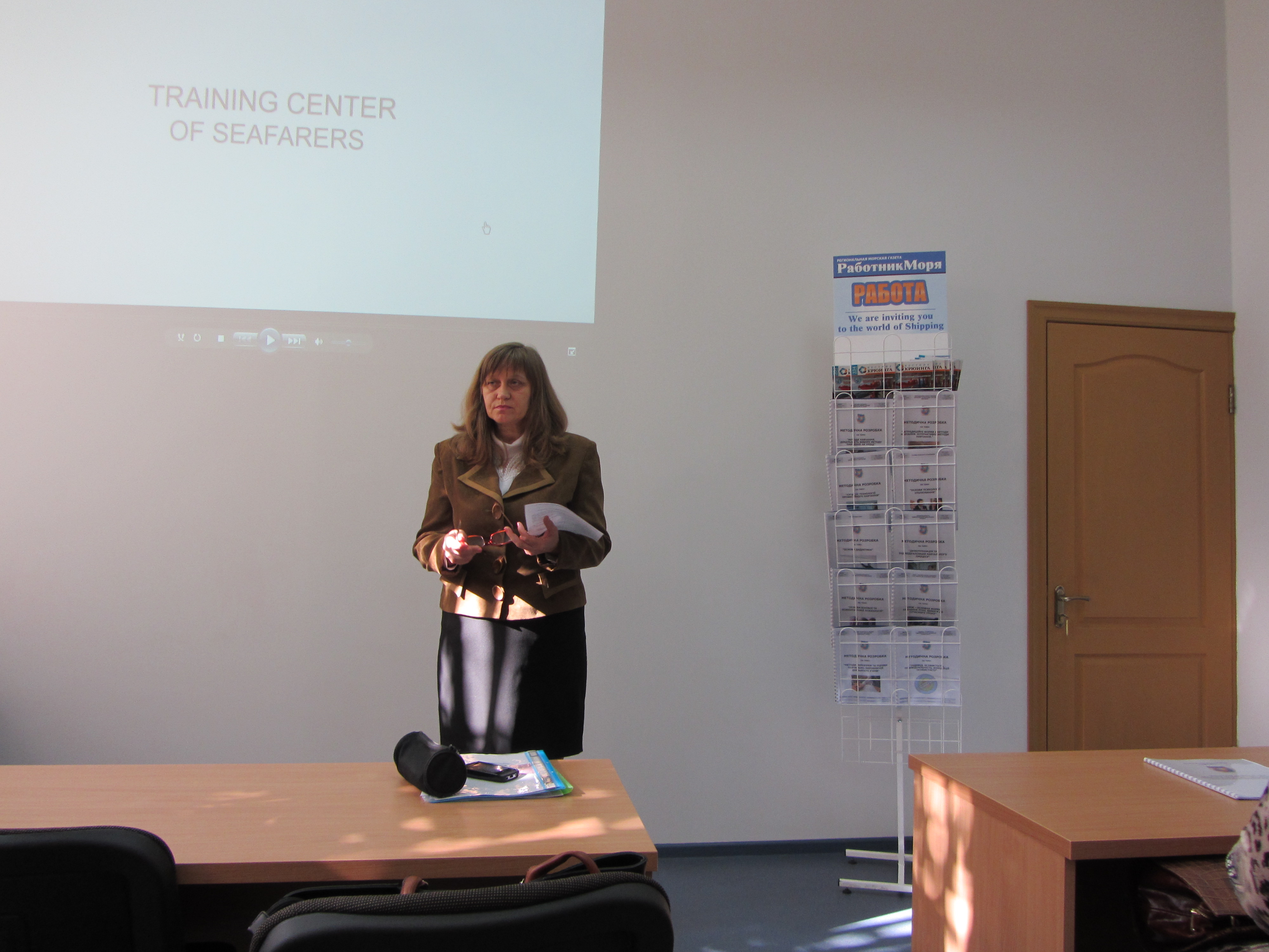 Дуже змістовним був виступ Бєлайчук Л.Ф., заступника виконавчого директора ТОВ «Навчальний центр фахівців морського транспорту»; вона розказала про комплексно-методичне забезпечення предметів та професій водного транспорту відповідно до вимог ДСПТО та міжнародних конвенцій.
