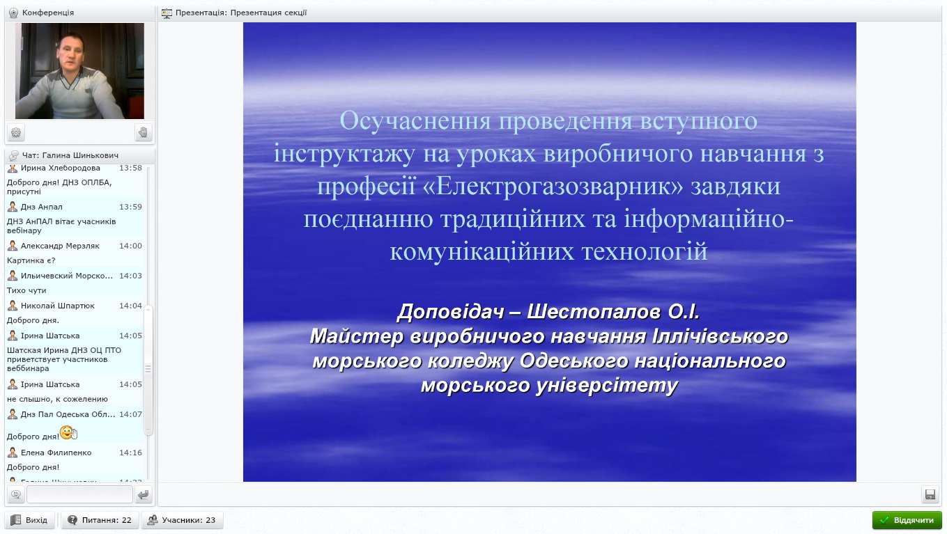 У роботі вебінару взяли участь 28 викладачів та майстрів виробничого навчання з 16 ПТНЗ Одеської області.