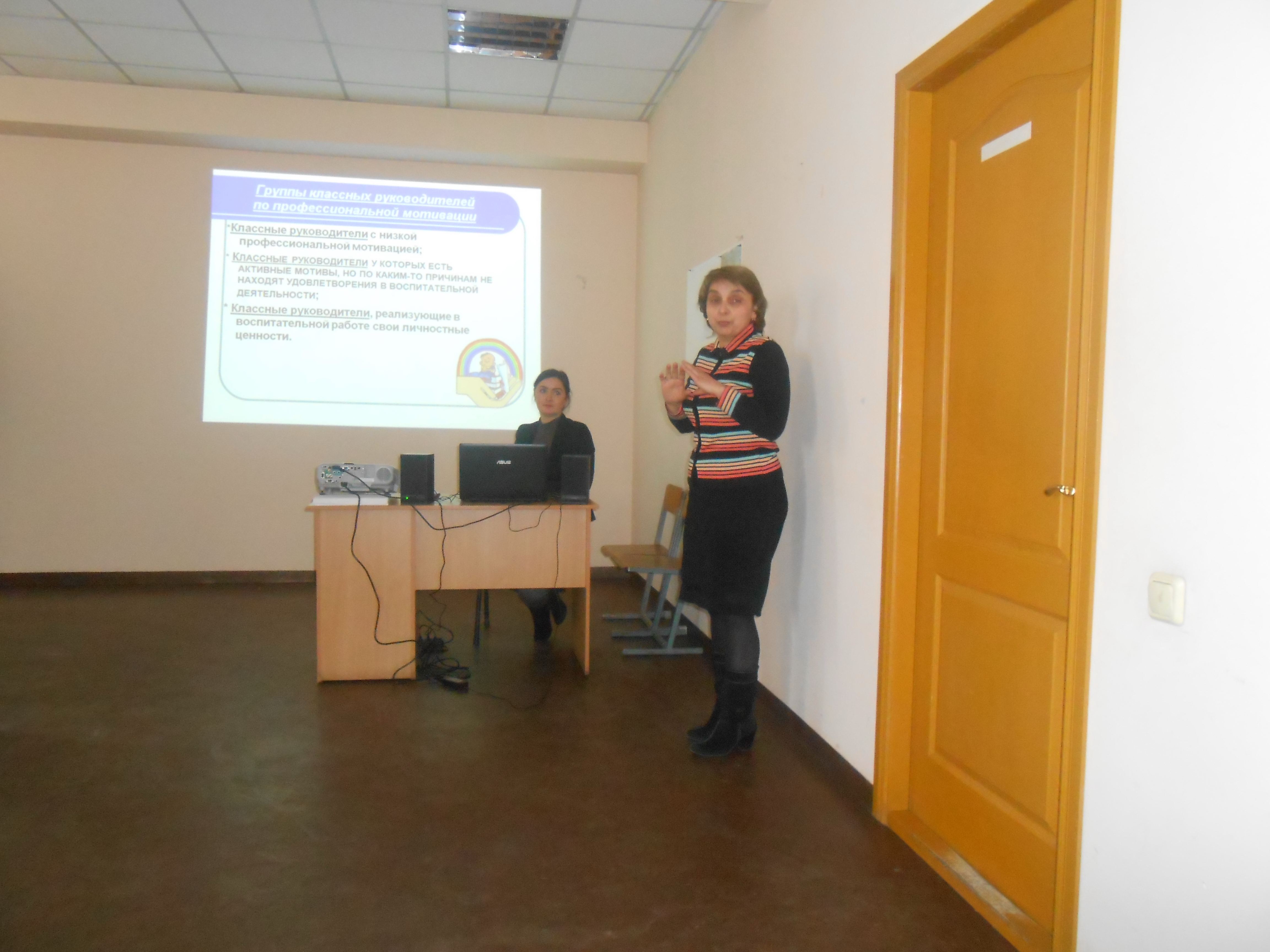 Заступник директора з НВихР ДНЗ «Теплодарський професійний ліцей» Гнатенко М. В., продемонструвала презентацію на тему «Співпраця класного керівника та майстра виробничого навчання в навчально-виховному процесі», про те що ці дві фігури єдине ціле в системі ПТО та провела психологічний тренінг «Етика педагогічного спілкування у формуванні особистості учня».