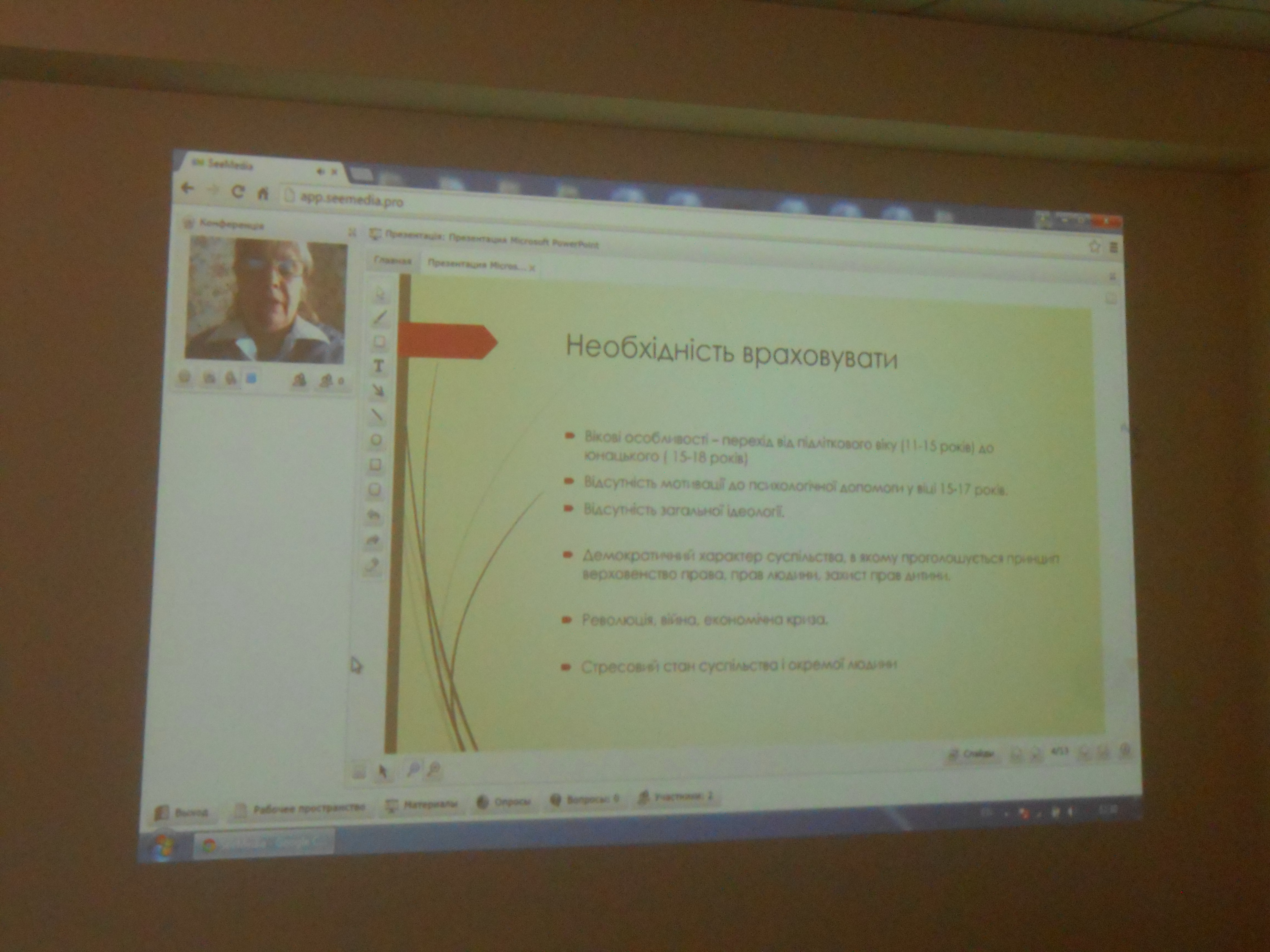 В скайп режимі на зв’язок вийшла практичний психолог ДНЗ «Татарбунарське професійно-технічне аграрне училище» Галка Г.А. – в своїй скайп-доповіді розповіла про взаємодію класного керівника та психолога, а також роз’яснила психологічне вивчення особистості за допомогою карт спостережень Стотта та провела вправу з учасниками семінару «Затишне та надійне місце».
