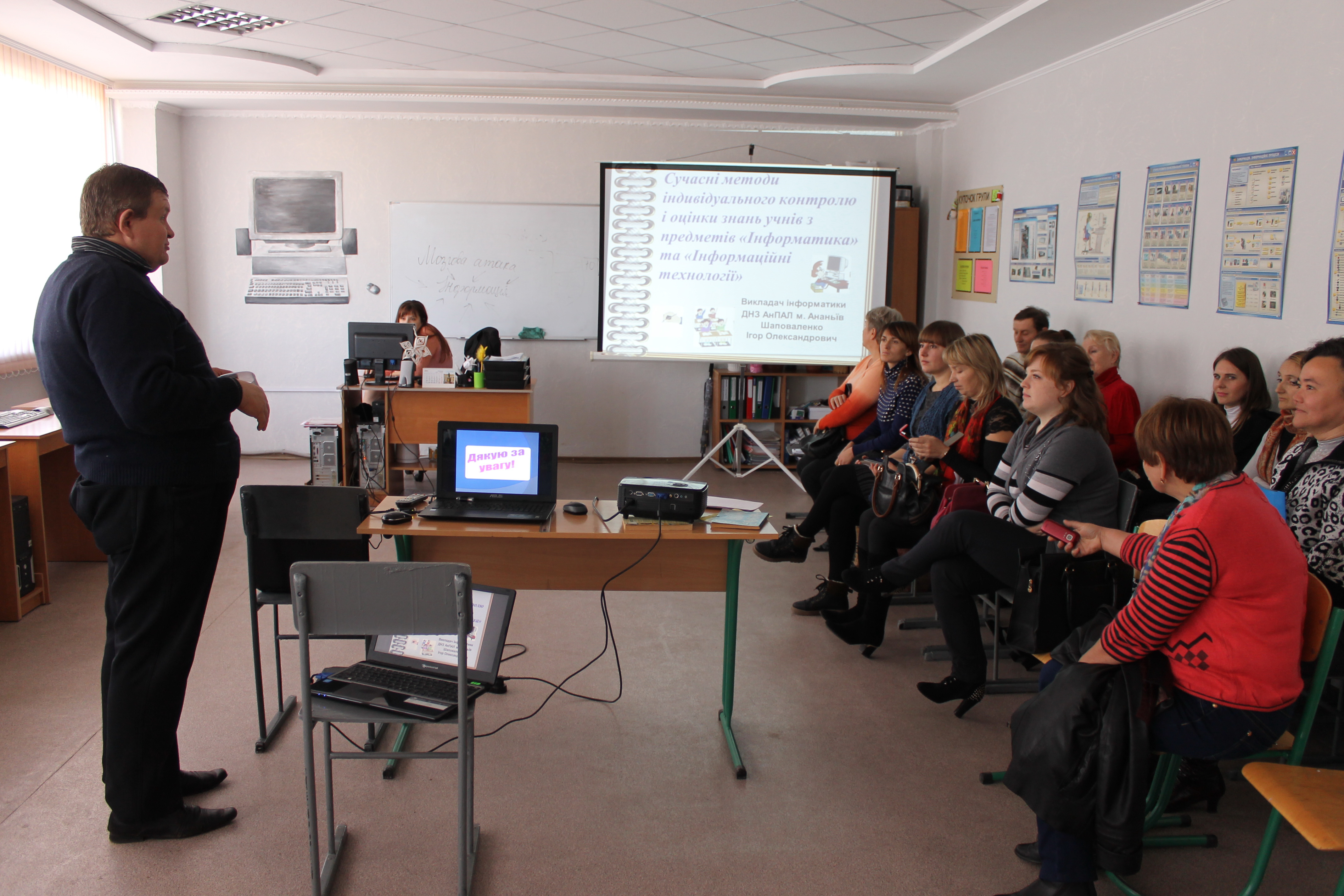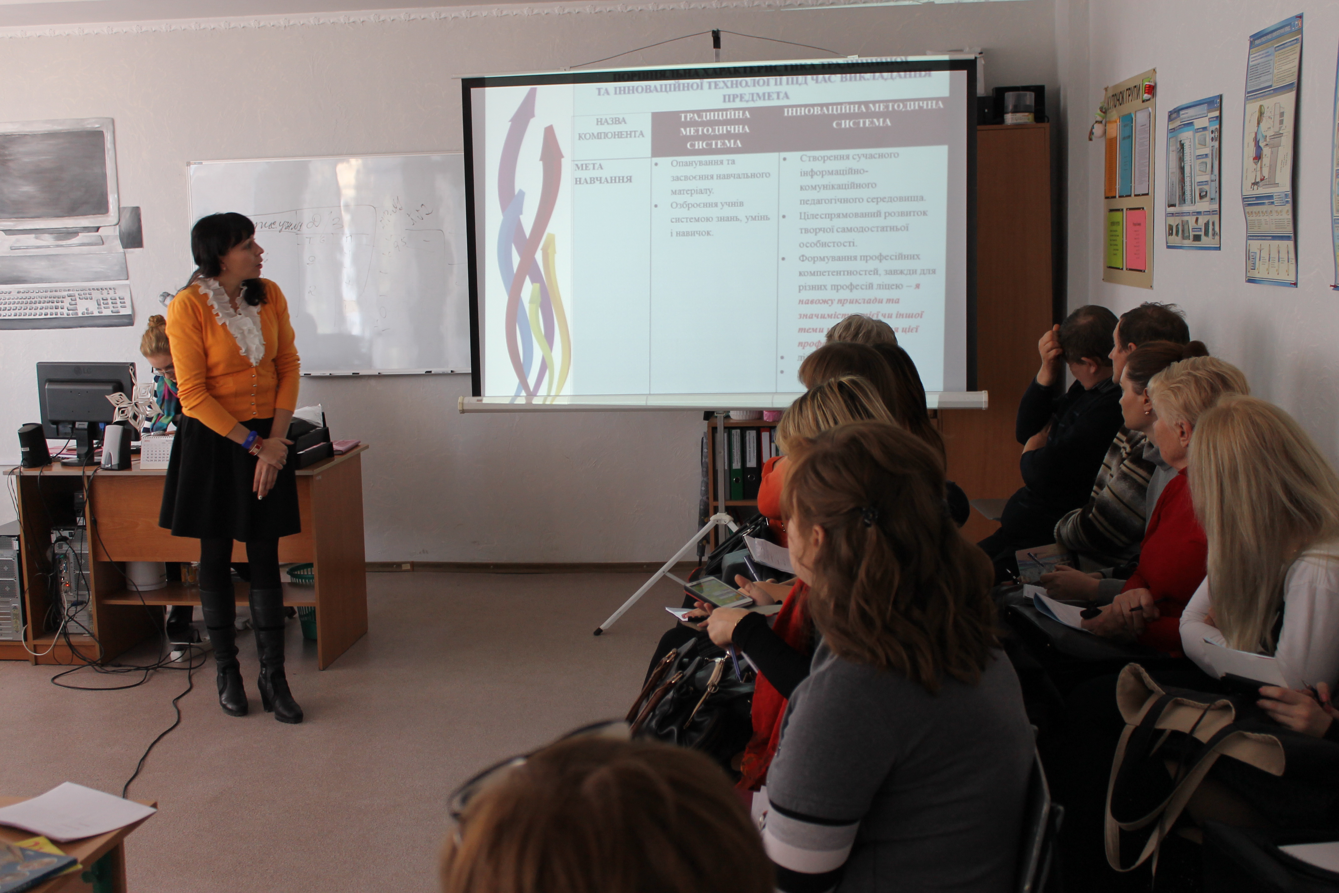 Під час роботи викладачами були розглянуті та проаналізовані традиційні та інноваційні технології, що використовуються на уроках. Вони ділилися досвідом: впровадження ефективних освітніх та педагогічних технологій в системі особистісно орієнтованого навчання; використання сучасних методів індивідуального контролю і оцінки знань учнів з предметів «Інформатика» та «Інформаційні технології». На прикладі бінарного уроку з інформатики та діловодства на тему: «Поняття про шаблон документа; створення документа» було розглянуто застосування сучасних інформаційних технологій у навчанні. Також були розглянуті результати впровадження інформаційно-комунікаційних технологій в навчальний процес та використання «хмарних технологій».