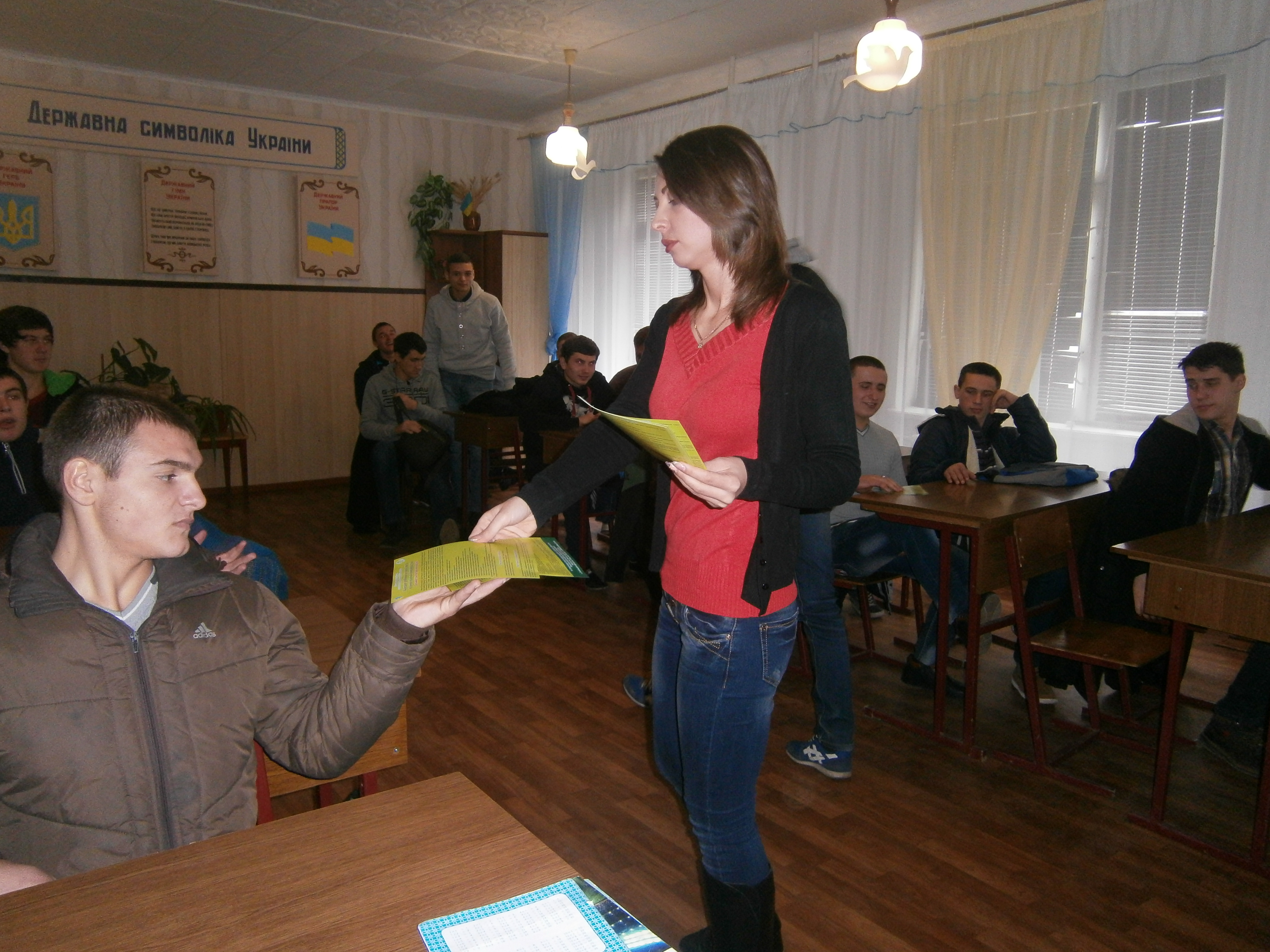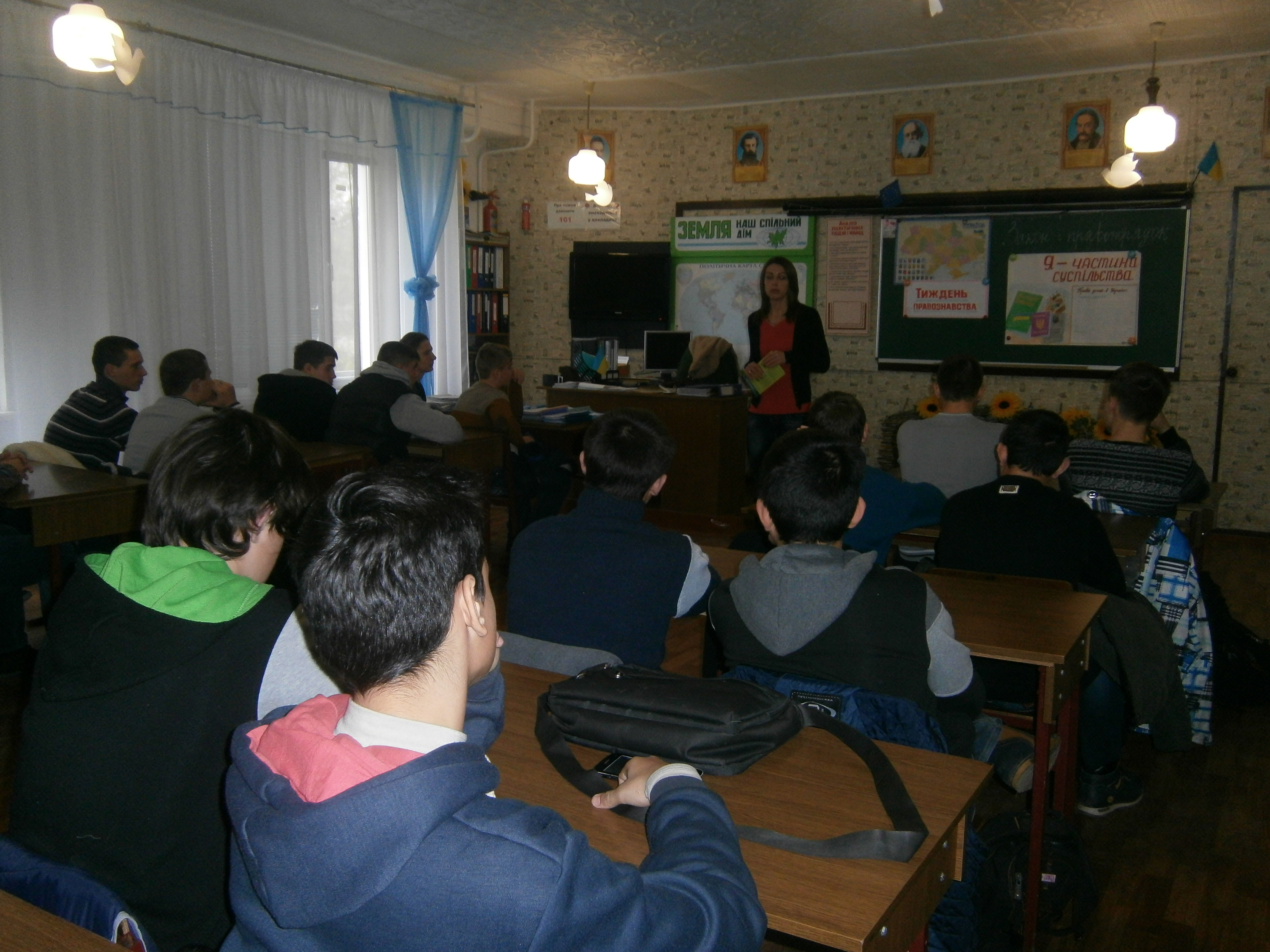В рамках Всеукраїнського тижня правової освіти в ДНЗ «Ізмаїльський центр професійно-технічної освіти» 7 грудня 2015 року проведений брифінг для учнів центру за темою «Закон і правопорядок». Мета проведення заходу – формування в учнів здатності до самоконтролю, поваги до моралі і правопорядку, вдосконалення правоосвітньої та правовиховної роботи з учнями.