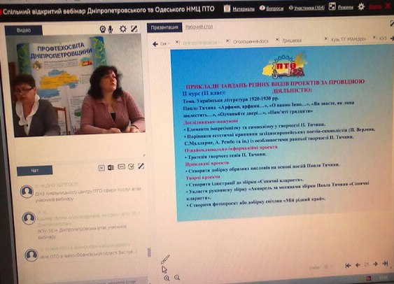 27 квітня 2016 року навчально-методичним центром професійно-технічної освіти в Одеській області спільно з навчально-методичним центром професійно-технічної освіти у Дніпропетровській області проведено вебінар для викладачів предметів загальноосвітньої підготовки професійно-технічних навчальних закладів на тему «Розвиток творчих здібностей учнів професійно-технічних навчальних закладів на уроках предметів загальноосвітньої підготовки шляхом використання сучасних технологій навчання».