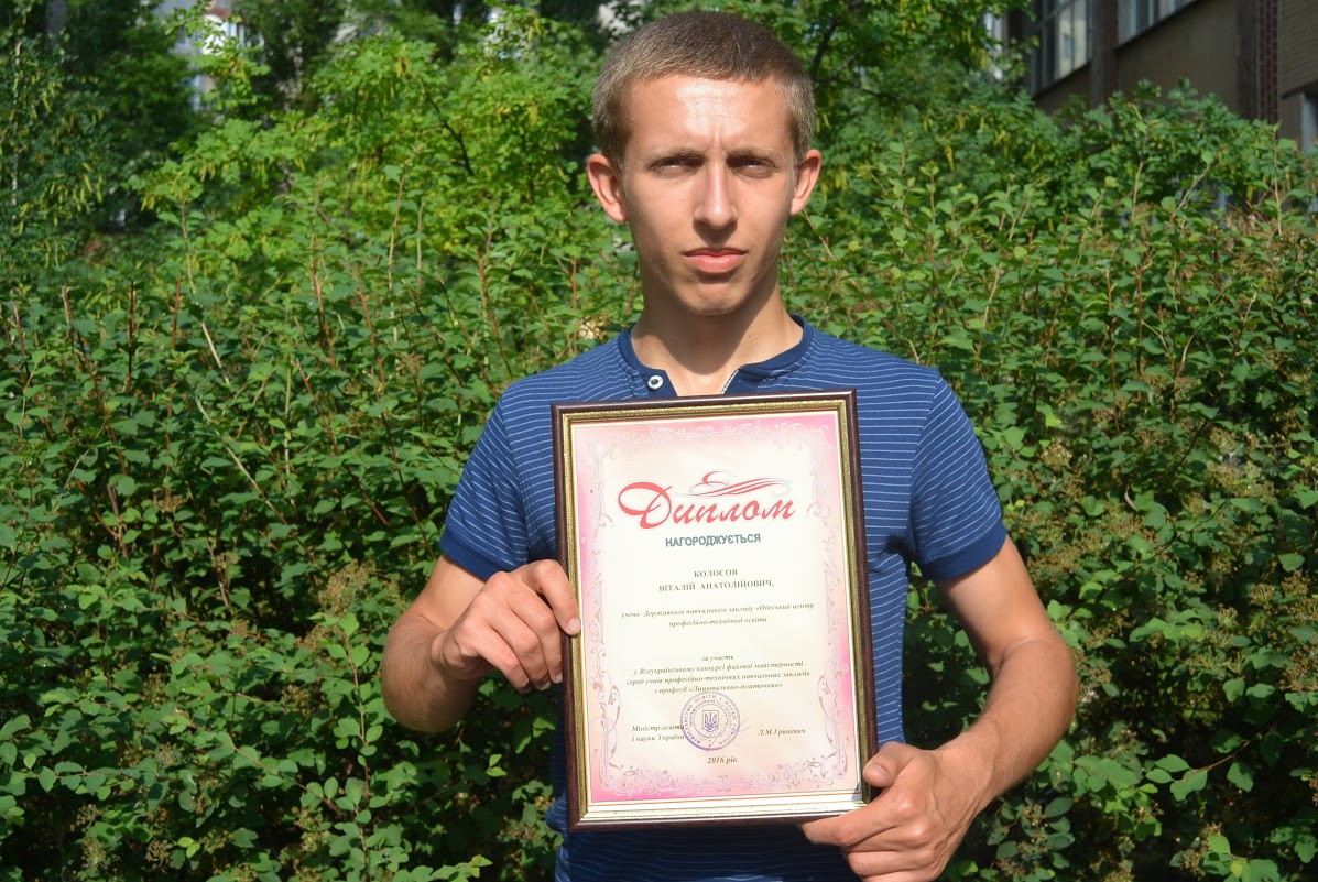 У ІІІ етапі Всеукраїнського конкурсу фахової майстерності серед учнів професійно-технічних навчальних закладів з професії «Лицювальник-плиточник» профтехосвіту Одещини представив учень державного навчального закладу «Одеський центр професійно-технічної освіти» Колосов Віталій Анатолійович.