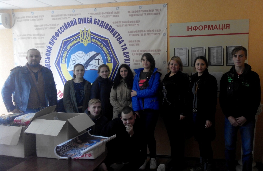 Учнями ліцею зібрано необхідні речі, продукти харчування, солодощі та щирі теплі побажання у листівках, адресованих воїнам Краматорського прикордонного загону та 28 окремій механізованій бригаді.